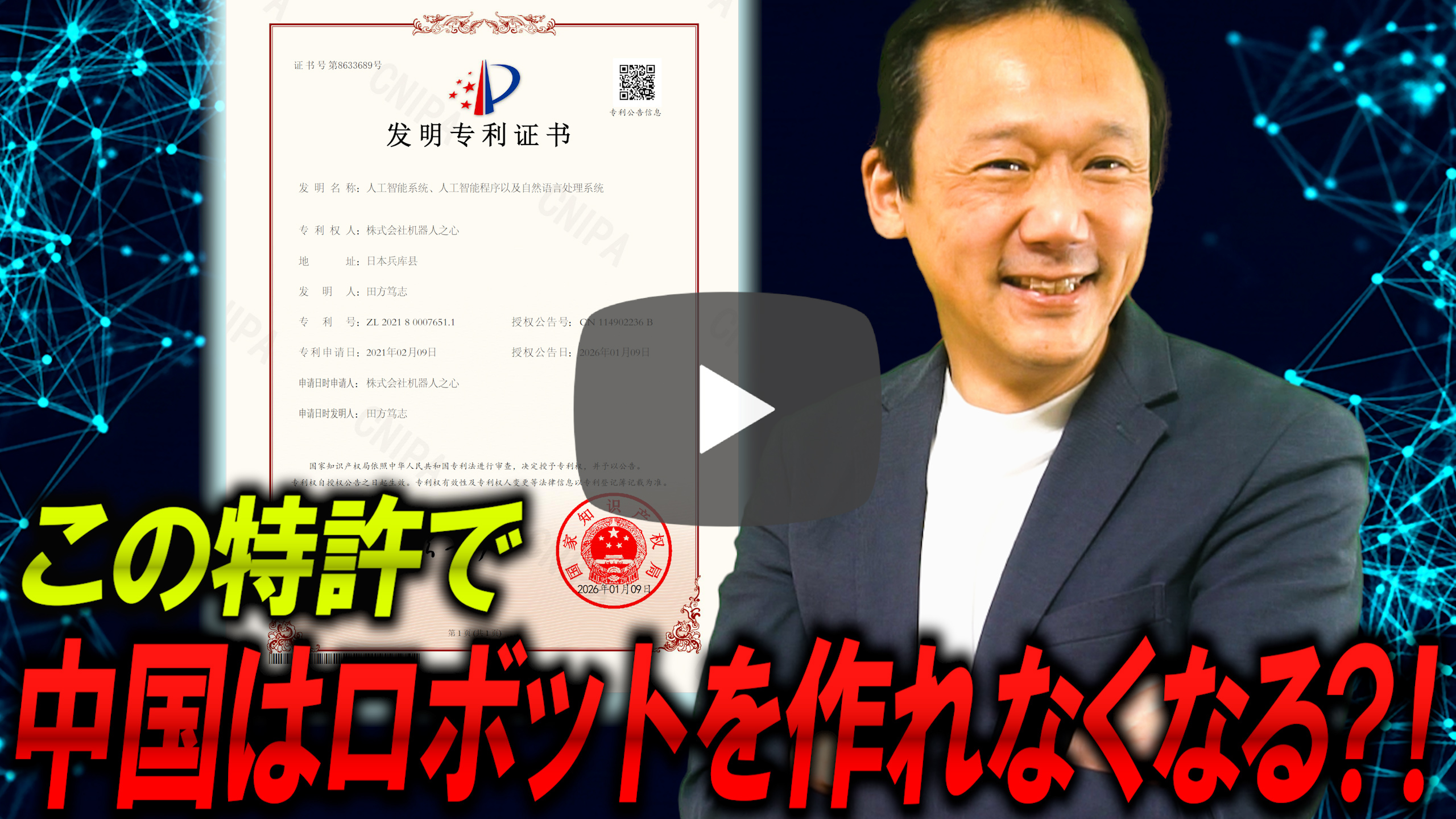 詳しくは動画を見てほしいんですけど、結論から言うと、これから中国で作られる人型ロボットは、この特許にほぼ含まれてしまうんじゃないかってぐらい広い権利範囲で取れました。